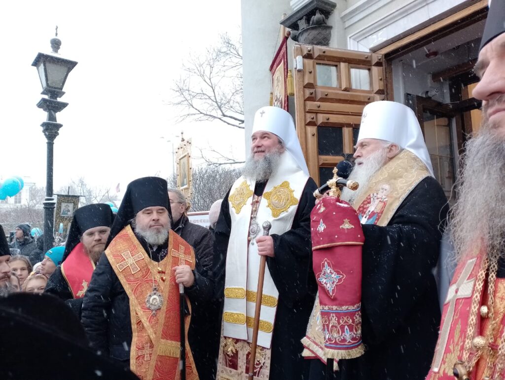 Крестный ход завершился молебном у часовни на историческом месте, где раньше располагался алтарь Екатерининского собора. Верующие смогли приложиться к иконе и ковчегу с мощами святой великомученицы Екатерины.